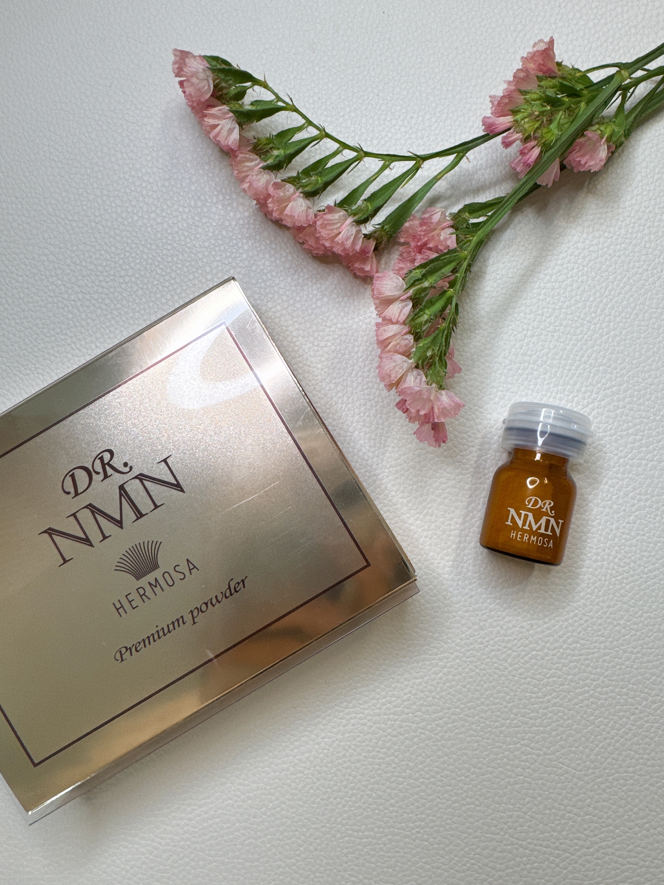 以黃金比例將維持年輕的 NMN 粉末充填於瓶中。